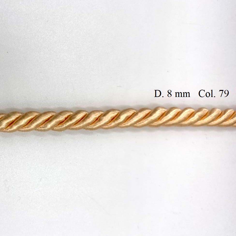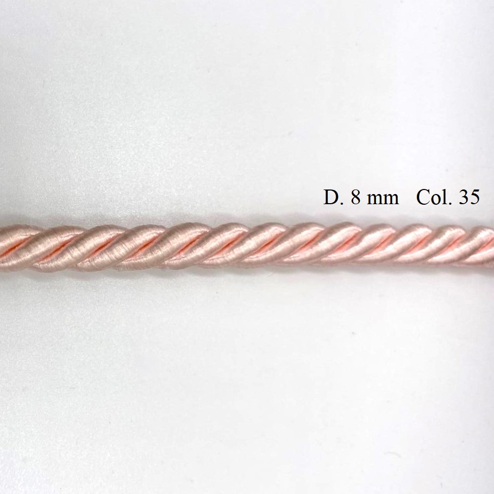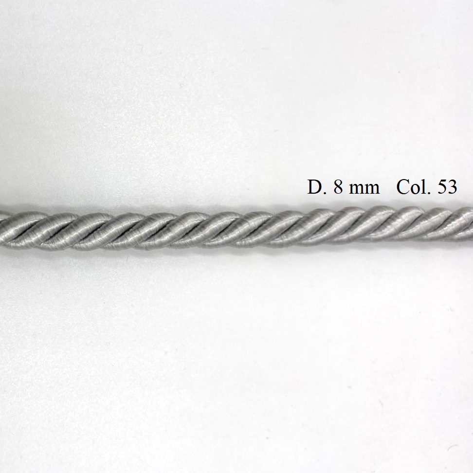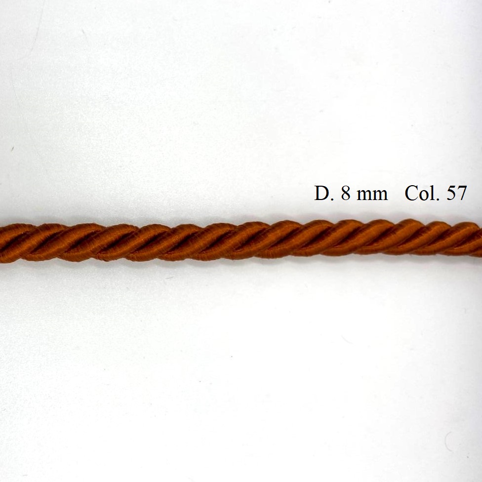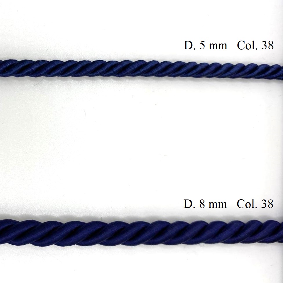 Cordone in rayon per passamaneria, di diametro circa 5 mm e 8 mm.