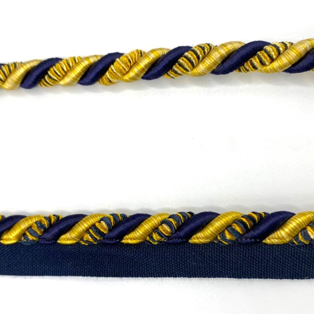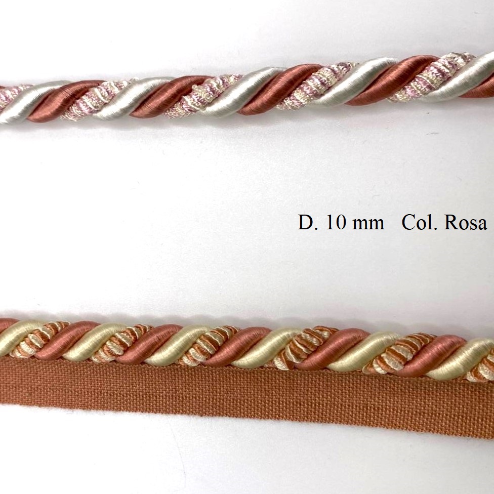 Cordone modello Venezia in rayon con fettuccia per passamaneria, di diametro circa 10 mm.