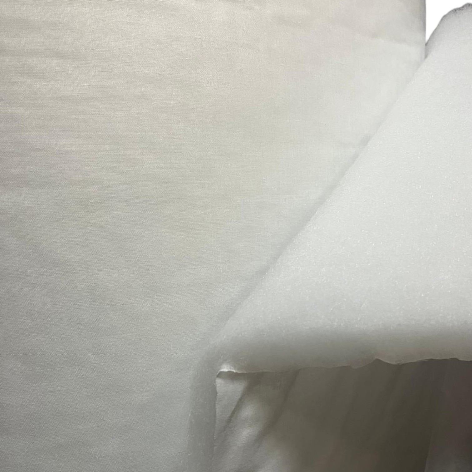 Dacron accoppiato in fibra di poliestere con tela in cotone, di spessore 2 cm e altezza 150 cm. Presenta una consistenza molto soffice e vellutata, è resistente e durevole nel tempo. Possiede un’ottima capacità di recupero, conservando la sua forma anche dopo un uso prolungato. Utilizzato come imbottitura per cuscini, materassi, divani, imbottiture per mobili e altri prodotti tessili.