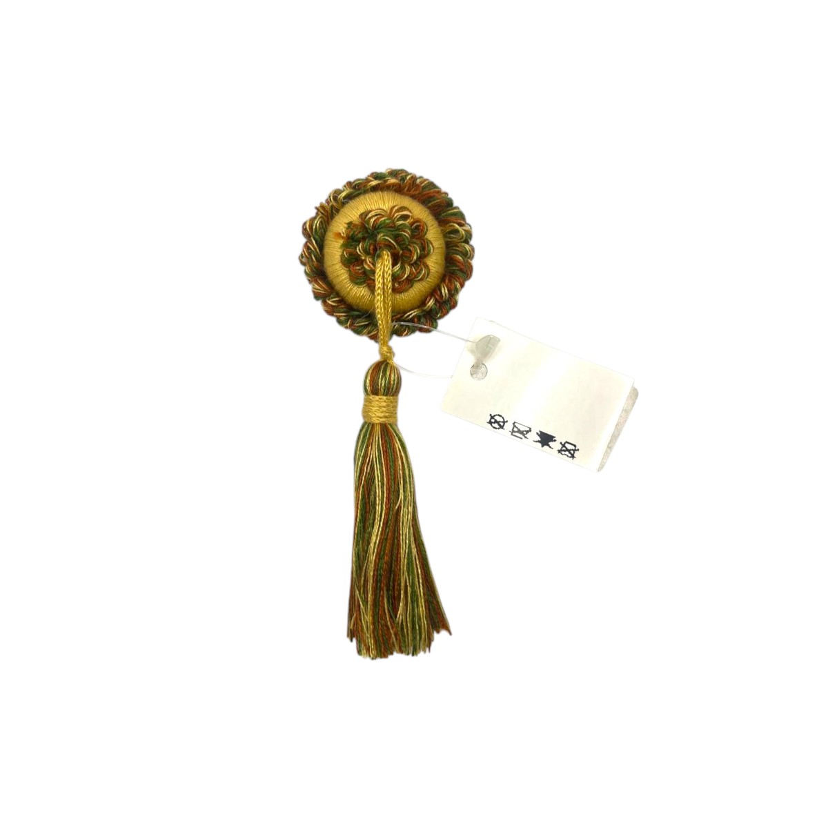 Fiocchetto con rosetta di diametro circa 5 cm in cotone, lunghezza totale di circa 14 cm.