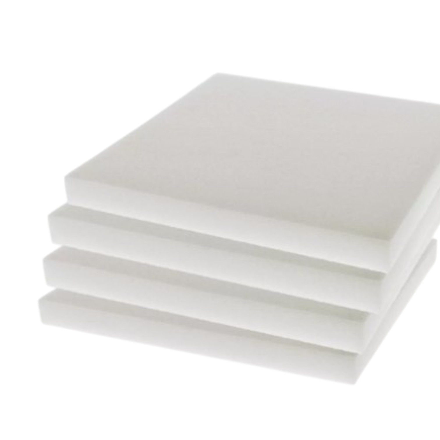 Gommapiuma quadrata densità 25 H bianca, rigidità media e indeformabile. Utilizzata per cuscini di sedie.