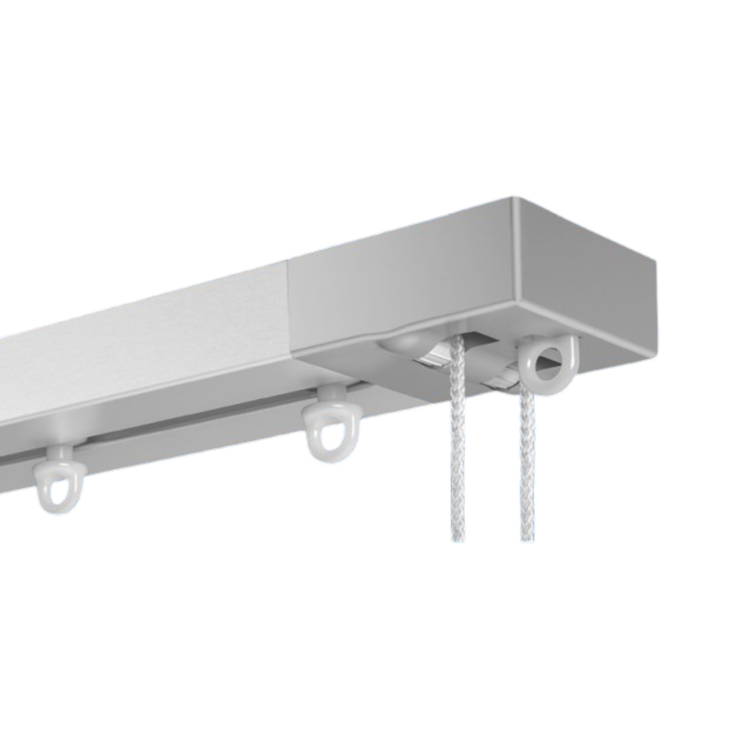 Sistema in alluminio Mottura modello Irys per tende arricciate con azionamento a corda, ad uso domestico e professionale. Indicato per installazioni a soffitto. L’apertura della tenda può essere centrale o laterale (a destra o a sinistra).