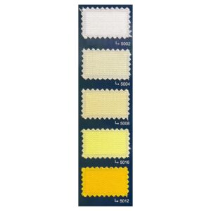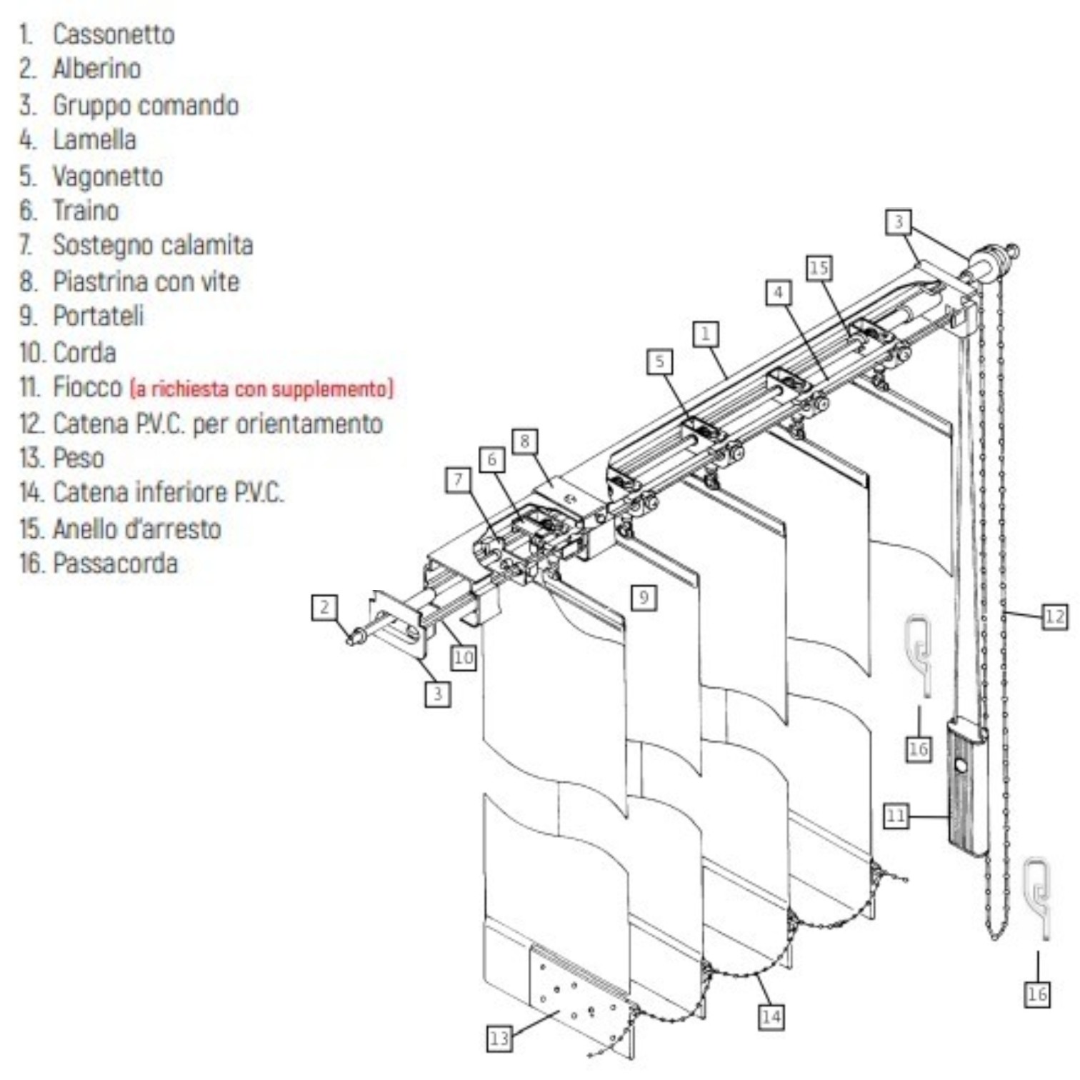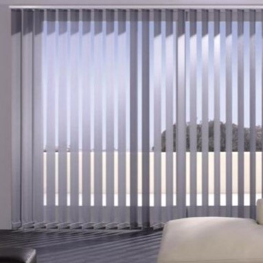 Tenda verticale con tessuto Thaiti FR in 100% Poliestere FR, ignifugo Classe 1, liste da 127 mm e cucite.